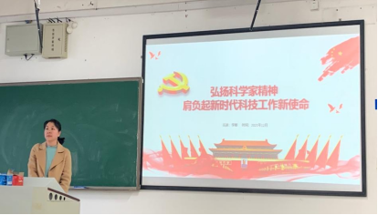 2021年12月20日下午,学院党委委员、副院长李敏教授在新校区A座教学楼317为本科生第一党支部、研究生第四党支部、研究生第十三党支部党员讲授主题党课。课程主题为弘扬科学家精神,肩负起新时代科技工作新使命。