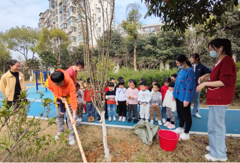 活动开展过程中,路过的幼儿园小朋友看到大哥哥大姐姐们为树木除草施肥,纷纷驻足观看。幼儿园老师向小朋友们介绍着我们的工作,诉说着“爱护花草,从我做起”、“保护环境、人人有责”、“等大家长大了,也要向哥哥姐姐们一样,为我们的家园尽一份自己的力。”党员同志们热情的向小朋友打招呼,看着一张张天真懵懂却面带钦佩的笑脸,获得成就感的同时,责任感与使命感也油然而生。这些孩子们何尝不是祖国的一朵朵鲜花,一棵棵树苗,同志们为树木浇水施肥的同时,满满的“正能量”也灌溉在孩子们心灵的最深处。