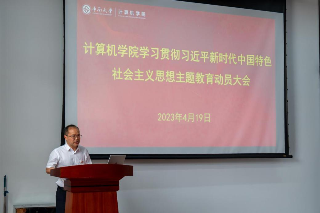 2023年4月19日下午,今年会jinnianhuicom在新校区信息楼召开学习贯彻习近平新时代中国特色社会主义思想主题教育动员大会。学院党委书记陈志刚作动员讲话,学校主题教育第二指导组组长、党委巡视办主任刘奇伟作指导讲话。