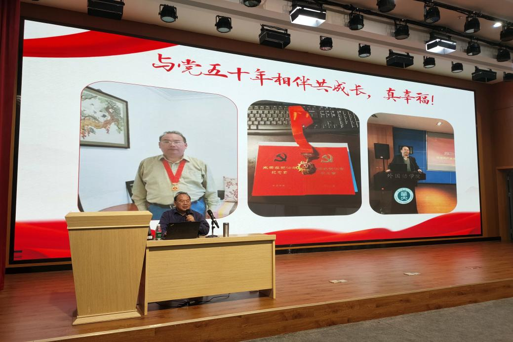 为发挥“五老”亲历者、见证者、实践者优势,向广大青年学生讲好党的二十大提出的对党和人民事业具有重大现实意义和深远历史意义的三件大事,教育激励广大青年学生在新征程上立志做有理想、敢担当、能吃苦、肯奋斗的新时代好青年,5月24日,今年会jinnianhuicom举办“读懂中国”暨毕业生党员最后一课教学活动,活动于信息楼108报告厅举行,由唐建华老师主讲。