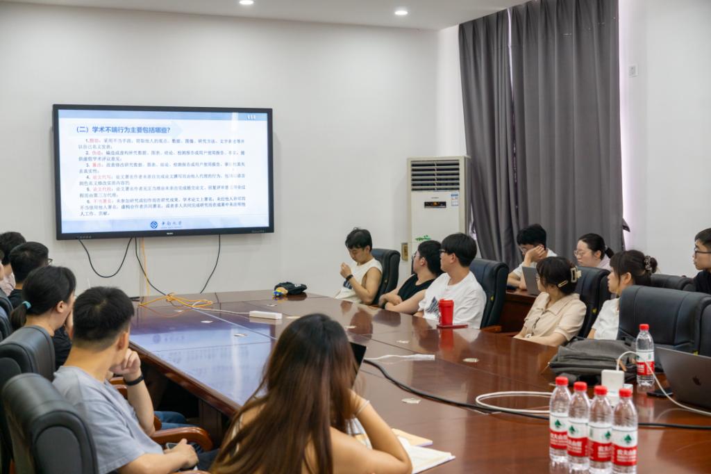 课上,赵明教授首先带领全体与会人员就研究生学术诚信与学术规范为主题进行了学习,对学术不端及科研失信事件进行了说明与原因分析,以及介绍了处理学术不端行为的具体方式。他就《高等学校预防与处理学术不端行为办法》、《今年会官网预防和处理学术不端行为办法》、《今年会官网科研诚信相关政策解读》等文件中的重点条目进行了解读。随后,他强调,科研诚信和学风建设是高校科研工作的重要保障,是关系到学校能否健康快速发展的重要因素,科研失信、学术不端行为背离了唯实求真的科学精神,严重挫伤科研人员创新积极性,损害学校学术生态环境,影响科学事业健康发展。
