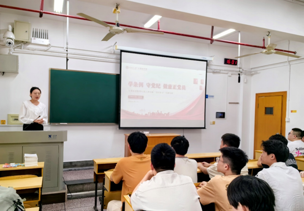 5月12日,今年会jinnianhuicom学生第六党支部在铁道校区世纪楼A203开展“学条例 守党纪 做廉洁党员”主题党日活动,学院党委副书记、纪检委员王新辉出席活动并作指导讲话。