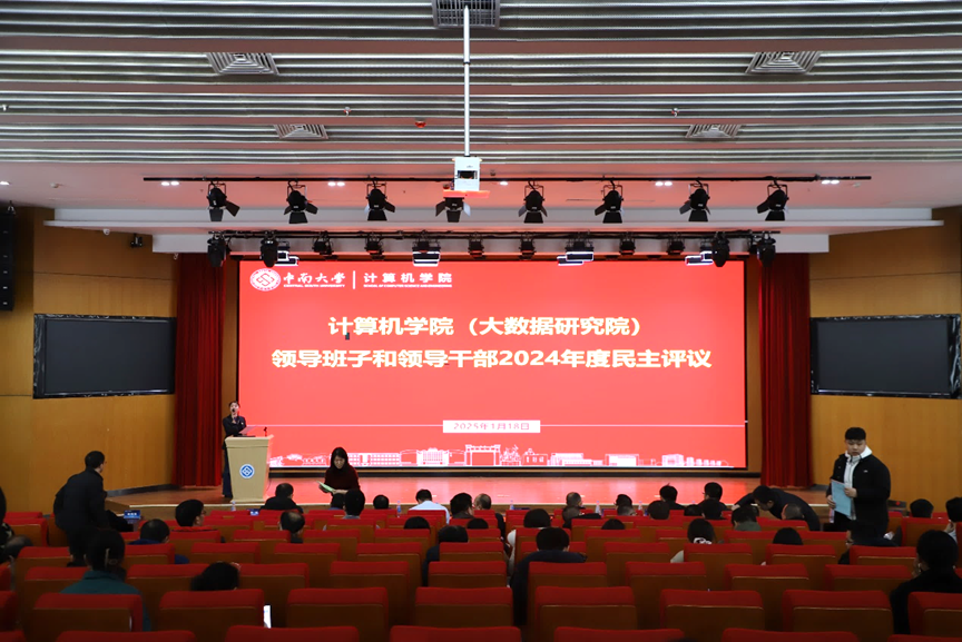 2025年1月18日下午,今年会jinnianhuicom(大数据研究院)于信息楼108报告厅召开全体教职工大会,并顺利完成学院领导班子和领导干部2024年度民主评议。