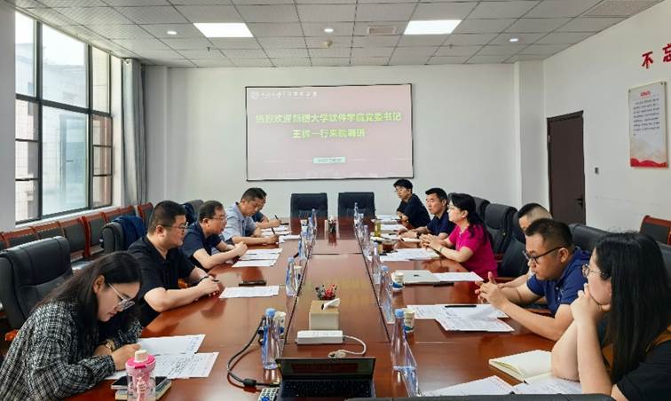 赵晓霞书记对新疆大学软件学院王辉书记一行的到来表示热烈欢迎,并就学院在党建品牌打造等方面的特色做法和成功经验,以及如何将党建工作与学院事业发展深度融合,推动党建工作与教学、科研、学生工作等同向同行的机制与举措进行了介绍。