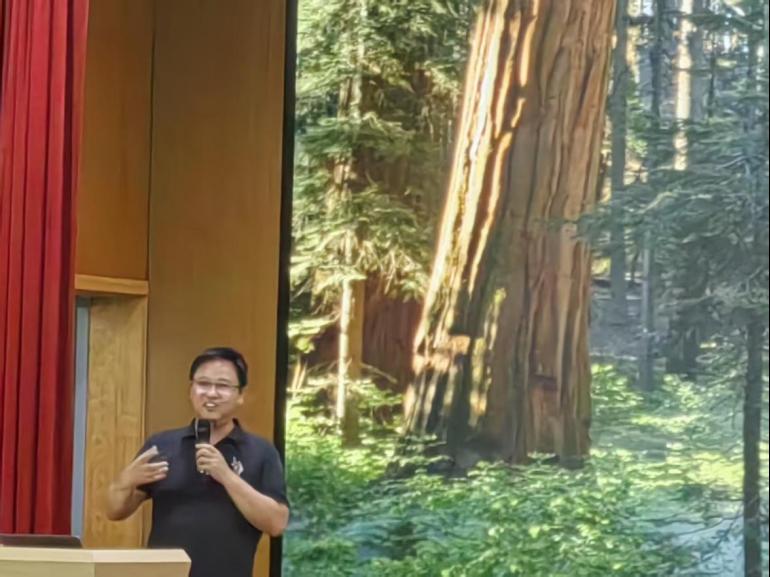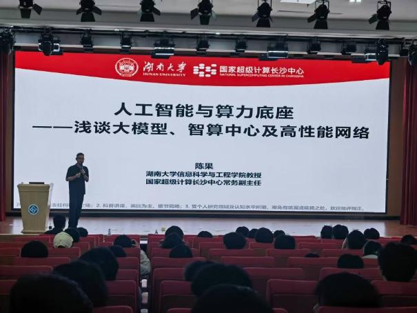 陈果教授是国家优青,来自湖南大学。他以“人工智能如何重塑工作与生活”切入,巧妙运用贴合大一学生认知的生动比喻,层层剖析支撑AI爆发的三大支柱:大模型技术核心原理、澎湃算力需求背后的逻辑、以及智算中心网络的基石作用。他不仅揭示了技术奥秘,更鼓励同学们多做了解、多做考察,在探索中提升能力、发现热爱。