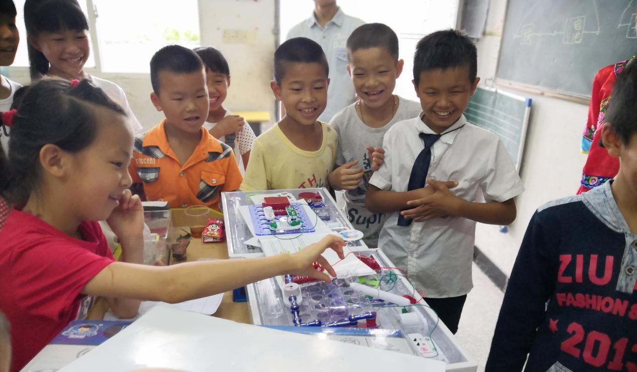 支教为期虽短,但内容丰富。团队的成员们设计了一系列教学环节让原本晦涩难懂的科技知识变得鲜活有趣。科普人工智能时,团队设计绕障碍小游戏形象讲解深度学习,组织辩论赛让孩子们探讨人工智能的利与弊;科学课上,团队利用气球、水瓶等简单道具带领孩子们做物理小实验,体味密度与浮力的联系;团队专门购买六套电子积木,让孩子们在自己动手拼装、搭建电路的过程中学习电路知识;用Python趣味编程带领孩子们玩手势识别、小猪佩奇绘画小游戏……这短短几天的授课内容仿佛一盏明灯,让花江的孩子们那一双双满怀憧憬又有些许迷茫的眼睛看清未来科技发展的方向,让孩子们触摸到科技之光。