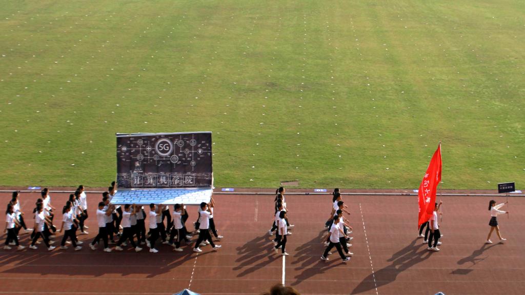 各二级学院方阵步伐整齐,身着各自院系的院服,行进中显示出各自专业的独特元素。举起大型模型计算机的今年会jinnianhuicom方阵、身披各色国旗的国际教育方阵等方阵都令人印象深刻。此次各学院方阵的以庆祝祖国70年华诞为主线,以体育拼搏、运动热情彰显对祖国的热爱。国旗校旗方阵作为先导拉起横幅“庆祝中华人民共和国成立70周年”“祖国万岁”,之后的方阵也表达出热爱祖国的赤忱之心。