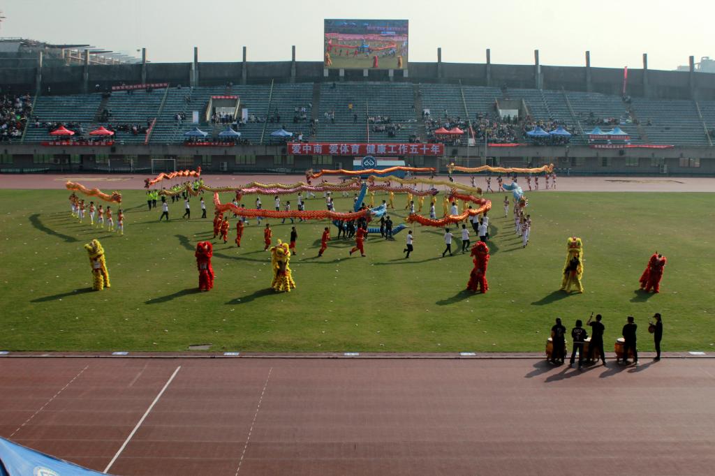 大型文艺表演是本次开幕式的亮点。舞狮舞龙队从三侧涌入表演场地,随着鼓声与音乐变化为各种形态,带给观众一场视觉盛宴。太极队与广播操队一慢一快,彰显出中南学子静则心如止水,动则欢悦跳脱的风貌。最后出场的花样跳绳精彩纷呈,表演者两人一组,将跳绳与街舞相结合,令人叹为观止。目不暇接的表演动作,将开幕式的氛围推向顶峰。