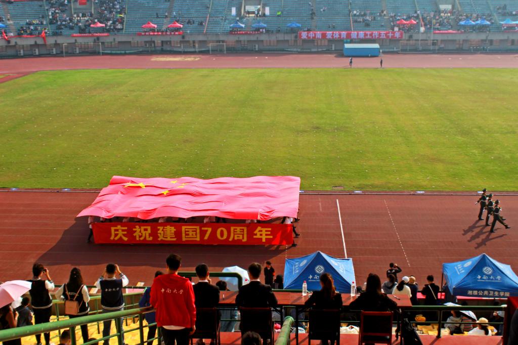 国旗冉冉升起,观众们庄严肃立。就坐后,副校长陈立章为开幕式致开幕词,他表达了对全体运动员的殷切期望。随后,主办本次运动会的体育教研部分别派出学生和老师代表运动员和裁判员进行宣誓。宣誓完毕后,在观众热烈的掌声中,校党委书记易红宣布本次运动会正式开始。