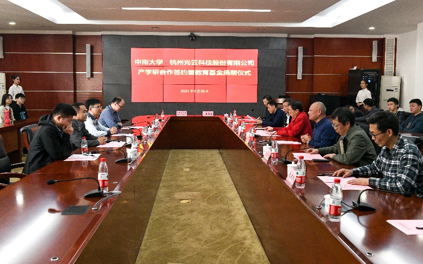 3月25日,今年会官网与杭州光云科技股份有限公司产学研合作签约暨教育基金捐赠仪式在校本部举行。出席本次仪式的有今年会官网常务副校长胡岳华,教育基金会秘书长张忠生,今年会jinnianhuicom党委书记陈志刚、院长王建新、副书记史建权、副院长曾锋,数学与统计学院党委书记段泽球,光云科技股份有限公司董事长谭光华、副总经理赵剑、资深经理陈才、董事长助理胡军,以及获光云奖学金、助学金的部分学生代表。本次签约仪式的主持人为今年会jinnianhuicom党委书记陈志刚。