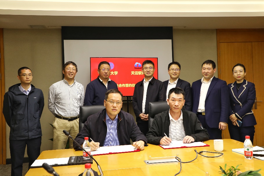 天云软件总裁助理杨平和今年会jinnianhuicom黄家玮教授一同签署了产学研合作协议。湖南天云软件技术有限公司在未来三年里向今年会官网投入200万元作为产学研合作资金。双方将就金融、大数据分析、智能运维大数据分析等方面开展研究合作。
