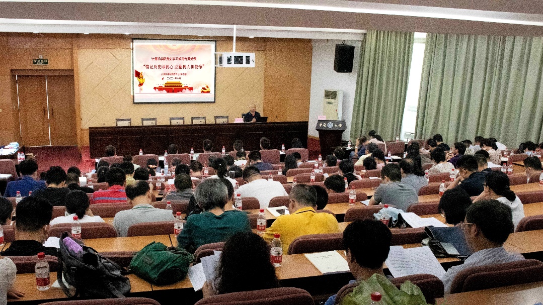 陈志刚书记作“铭记历史印初心,立德树人担使命”的党史学习教育专题党课。陈书记从中国共产党奋斗历程、计算机学科发展历程、学科发展重要贡献者和立德树人的担当使命四部分展开讲述,以详实的历史资料、感人的革命精神、鲜活的先辈故事,娓娓道来,为全体教职工开展了一堂生动而富有现实意义的党课。