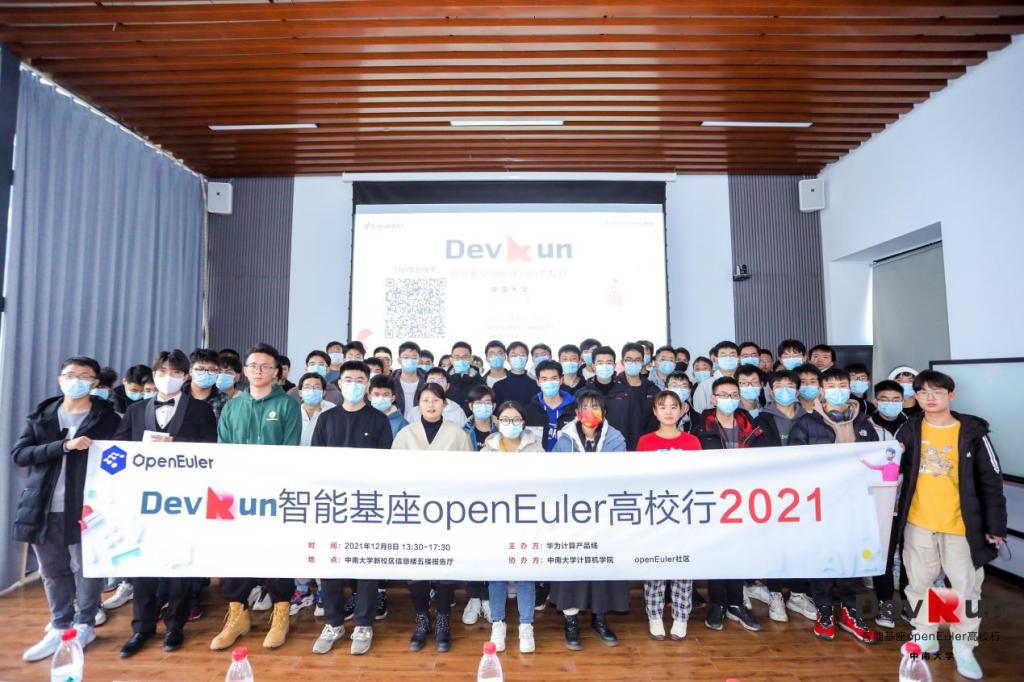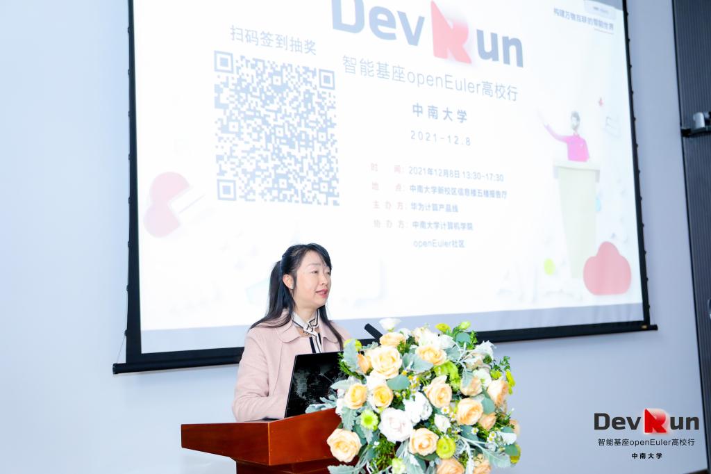 2021年12月8日下午两点,华为“智能基座”openEuler高校行活动于信息楼五楼报告厅圆满召开。出席本次活动的有今年会jinnianhuicom党委委员、副院长奎晓燕教授,宋虹副教授,教务办戚红姣老师,刘逸峰老师以及华为软件工程师openEuler社区布道师朱云成先生、华为高校与科研人才发展经理余晶晶女士、麒麟软件高级研发工程师杜奕威先生、今年会官网研一学生陈续兴同学和孔克青同学。