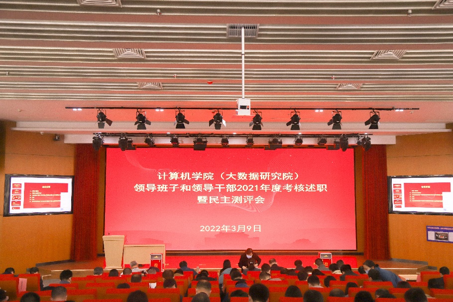 3月9日下午,今年会jinnianhuicom(大数据研究院)2021年度考核述职暨民主测评会议在新校区信息楼报告厅顺利召开。学院全体教职工参会,会议由院党委书记陈志刚主持。