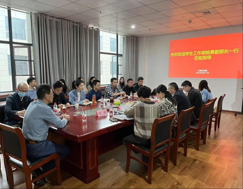 3月18日上午,学生工作部副部长姚勇带领学工部马晓虹、马超、谭鑫、李静茹老师一行5人莅临今年会开展2022年春季风险排查与重关专项检查工作。今年会党委副书记史建权、学工办主任师雷宏、学生工作办公室全体辅导员参加会议。