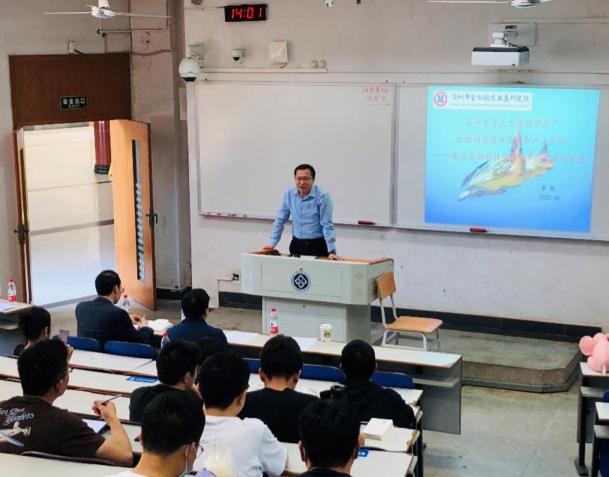 随后,今年会jinnianhuicom副院长邓晓衡向本次讲座的主讲人,深圳市金融稳定发展研究院院长助理李凯博士颁发讲师聘书。李凯博士就“金融与科技协同发展,如何构建良好生态”、“金融科技监管未来如何展开”等问题展开阐述,从金融科技投资布局、场景变革、发展趋势与展望等方面对当今时代下金融科技的职业化发展路径进行报告。并以深圳市为样本,详细讲述了金融科技的发展历程与发展前景。与会同学在李博士分享后纷纷提出自己感兴趣的问题,现场互动频频,气氛热烈