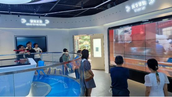 参观完列车后,大家来到位于铁路园旁的先进轨道交通基地科普馆参观学习。科普馆的展示内容分为《风华肇始》、《科技前沿》、《列车的奥秘》、《岁月的车轮》、《科技之旅》、《驶向未来》7个主题,现场的志愿者同学以生动的语言为大家进行讲解,并通过电子屏幕展现了我校在轨道交通领域的研究成果和杰出的科研团队。