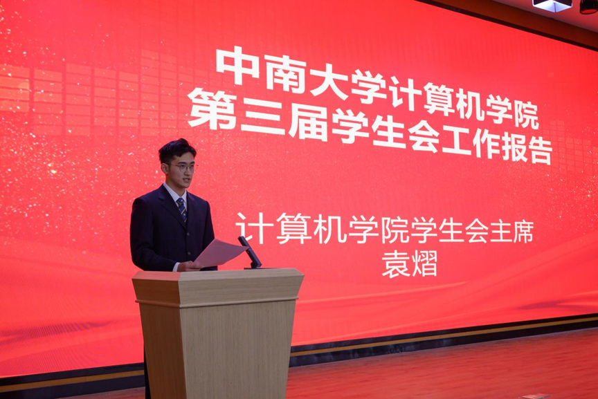 接着,大会听取并审议了院学生会主席袁熠、研究生会主席杨维鹏所提交的第三届院学生会、研究生会工作报告。报告涵盖学院队伍、文化、机构改革、活动等多个方面的内容,指明上个学年学院各种活动组织的重要意义。同时,对新一学年学生会和研究生会的工作方向以及改革措施进行了详细的介绍。