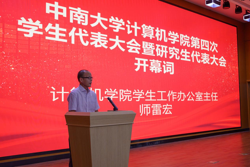 大会第二项,学院学工办师雷宏主任致开幕词,拉开本届学生代表大会帷幕。师主任向一直以来关心、支持学院学生会和研究生会的上级组织表达了由衷的感谢,同时预祝本次大会议程顺利进行。