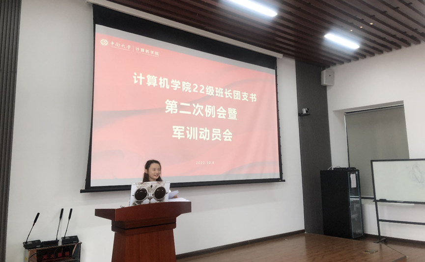 接着,军训指导员刘烁烁老师对军训的事务进行了总括性的介绍,并向参会的班长团支书明确了军训的要求。刘烁烁老师指出,在军训过程中,我们将进行思想上的升华、军事技能的学习,开展新生第一堂思政课,举办“喜迎二十大,奋进新征程“的主题系列活动,并进行军训文化氛围的营造。他提到,同学们应政治思想到位、严抓安全防线,注重疫情安全、训练安全、舆情安全,以及食品安全,我校也将科学按纲施训,严抓疫情防控。对于具体的要求,刘老师向同学们传达了有关个人健康防护的重要性、宿舍建设的内容、封闭管理的规范,以及考勤制度的安排。此外,刘老师还细心地提点各位班长团支书,应注意与其他班委的分工合作,在个人意志体魄得到锻炼的同时增进班级同学感情、提升班级凝聚力,带领班级更好地发展。
