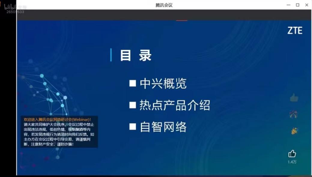 讲座的第一项内容,刘峰老师进行了自我介绍,并对讲座内容进行了简要概括。整个讲座过程中,刘老师高屋建瓴,从中兴公司的概览,其热点产品与自智网络三个方面围绕演讲主题进行了详细介绍。