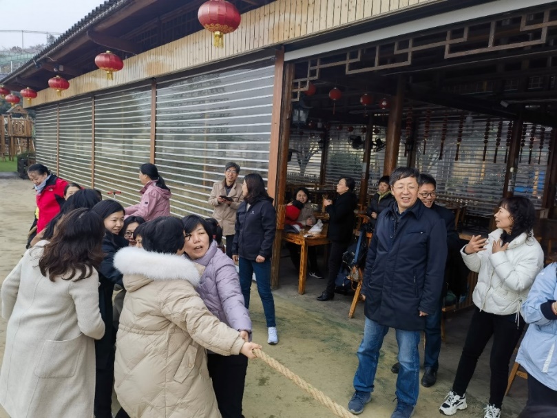 之后,随着裁判的一声哨响,激动人心的拔河比赛拉开了序幕,此次比赛由学院女教职工以9人为单位混合组建了4支参赛队伍,每个队队员都众志成城,奋力使劲,不甘示弱,以团结友爱、顽强拼搏的精神投入比赛,充分体现了学院教职工团结协作、积极向上的精神风貌。场外的观众精神抖擞,自发组成了啦啦队齐声呐喊,不断地为运动员助威。比赛过程气氛热烈,其乐融融。
