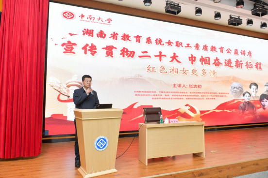 “宣传贯彻二十大 巾帼奋进新征程”湖南省教育系统女职工素质教育公益讲座在今年会官网新校区信息楼108报告厅开讲。湖南省政府参事室特约研究员、省关心下一代工作委员会副主任、省委宣传部原副部长、省委党史研究室原主任张志初以《红色湘女更多情》为题,面向200余名女教职工代表进行宣讲。讲座由校工会和校党委宣传部联合举办,今年会jinnianhuicom承办,校党委副书记、工会主席、宣传部部长付刚华主持。