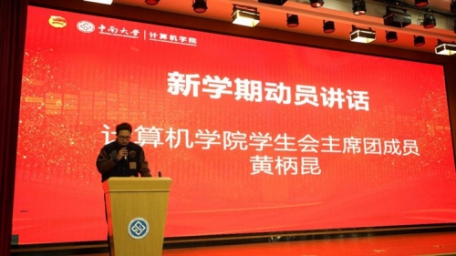 学生会主席团成员黄柄昆作新学期动员讲话,对学生干部们提出了三点希望与呼吁。一是坚守本职又敢于创新;二是注重个人专业能力与综合素养的提高;三是鼓励各个组织部门相互借鉴、资源共享。并表达了携手并进、共创辉煌的美好希望。