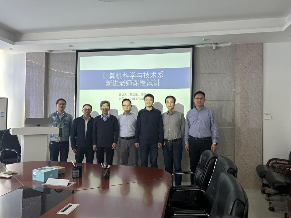 本次试讲中,新进教师覃立波和吴帆分别进行了试讲。督导谭长庚、王磊;同行教师张永敏、何世文、石峰分别对两位新进老师的本次试讲从学生培养方案,教学大纲,教课内容,组织结构以及PPT制作等多个方面提出了宝贵的建议。多位老师强调,教好一门课是一个系统工程,需要用心备好课,与学生多沟通,反复复盘。两位新进教师表示各位老师的建议为各自后续的上课提供了宝贵的经验,以便提升教学过程的有效组织和引导能力。通过本次试讲,希望新进教师们能不断成长,上好课,做好学问,形成各自特色教学风格,进一步提升计算机科学系本科生教学质量,共同谱写学校、学院发展新篇章。