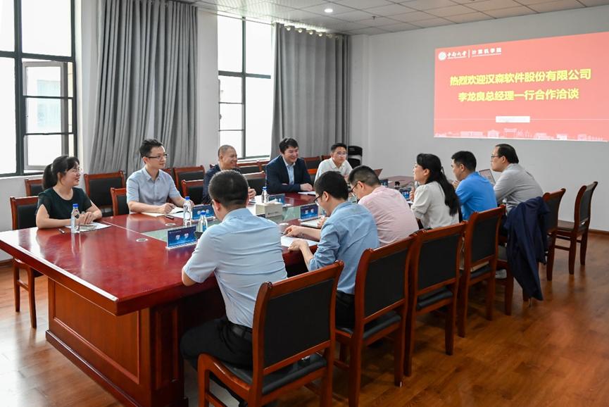 为加强校企深入合作,4月26日下午,深圳市汉森软件股份有限公司李龙良总经理一行来学院进行合作洽谈。交流座谈会在信息楼416会议室召开,学院党委书记赵晓霞主持会议。学院党委副书记王新辉、副院长赵明、副院长黄家玮、副院长夏佳志及教师代表参会。