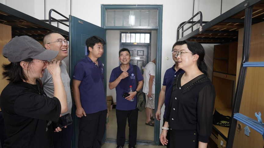 学院领导、老师对新生的关爱如约而至。学院党委书记赵晓霞、院长李敏、党委副书记王新辉亲临迎新处慰问新生及志愿者,走访宿舍楼栋,与家长、新生一同合影留念,冒着酷暑第一时间将满满的关怀送达。他们对2024级新生未来的成长发展充满期许,勉励同学们积极锻炼良好的专业能力和创新意识,珍惜时光,提升自我,同时也对学院志愿者们的辛勤工作和热情态度给予了高度肯定。