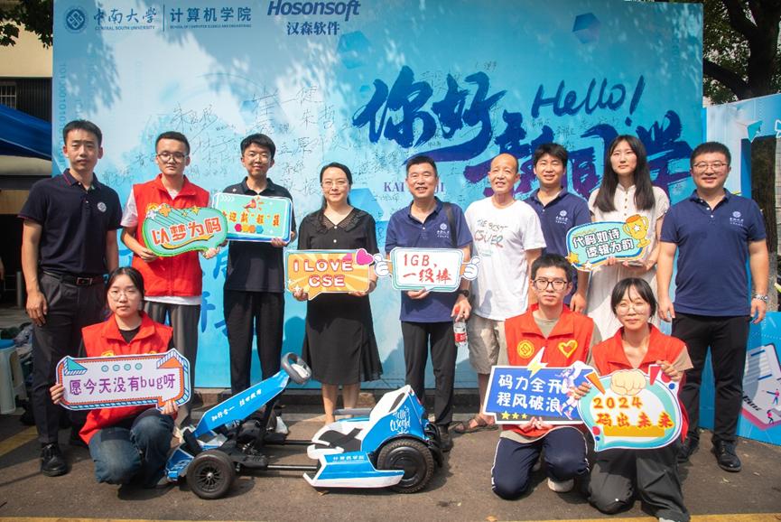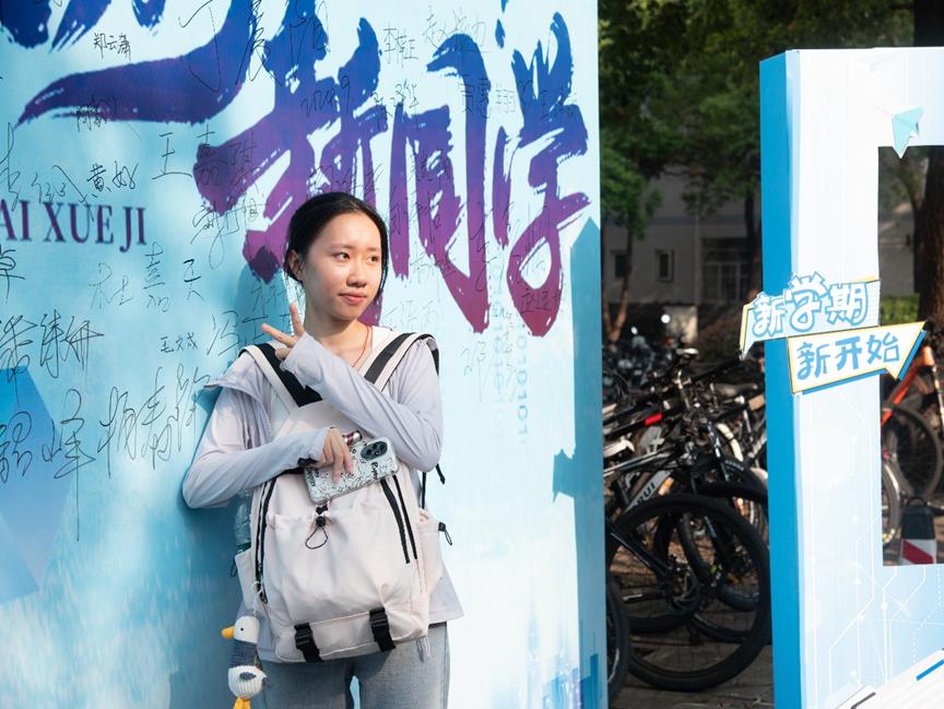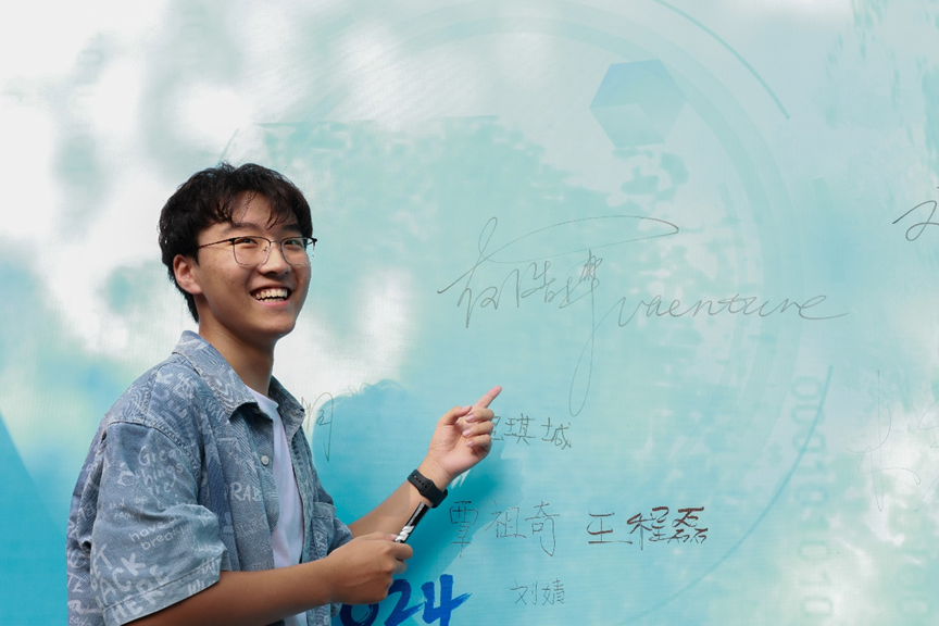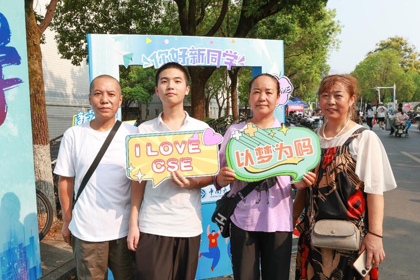 眼前满是朝气蓬勃的面孔与自信活泼的笑容。新同学们青春靓丽,意气风发,为学院注入生气与活力。他们尝试驾驶蓝色迎新卡丁车,在“‘程’前启后,‘计’往开来”展板上留下自己的独属签名,在各个学院组织招新海报前驻足,充满对未来的希冀……学院的万事万物颇具新鲜感。签字、合影、采访,陪同的家长们笑意盈盈,霎时阳光灿烂,暖意融融。