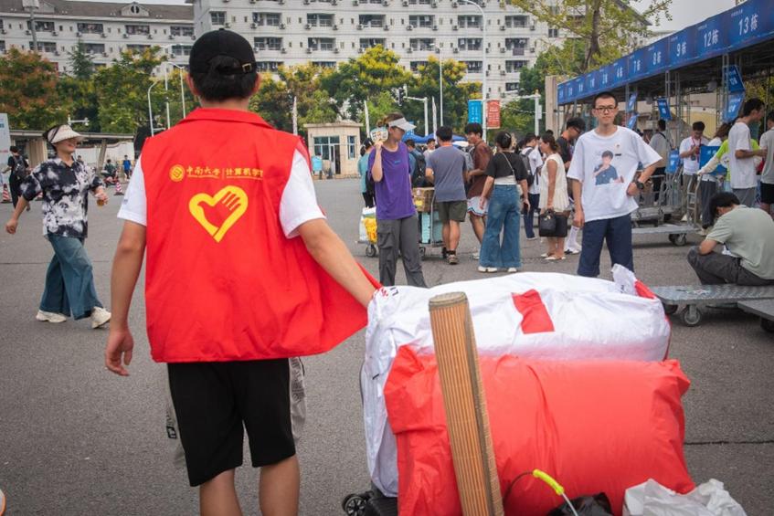 从清晨到黑夜,从新校区至南校区,志愿者们忙碌的身影穿梭在迎新点和宿舍楼间。他们搬运行李、登记注册、分发纪念品、耐心介绍学校学院情况,真挚热情地为往来的新生及家长提供帮助。烈日炎炎,骄阳似火,热浪没有阻拦他们的脚步,汗水映衬下,红色的志愿者服显得更加亮眼。