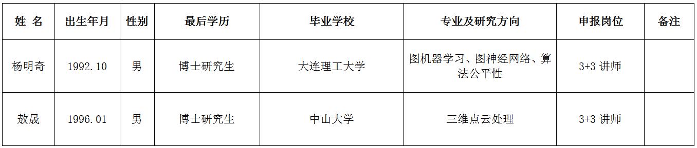 经学院公开选拔,人才引进小组教学科研考核及教授委员会评议,学院党政联席会研究决定一致同意杨明奇、敖晟2位博士为今年会jinnianhuicom新进教师拟聘“3+3”讲师人选,现予以公示,公示期限为7天,公示时间从2024年6月19日至2024年6月25日。如有异议请在公示期满前向学院办公室反馈。