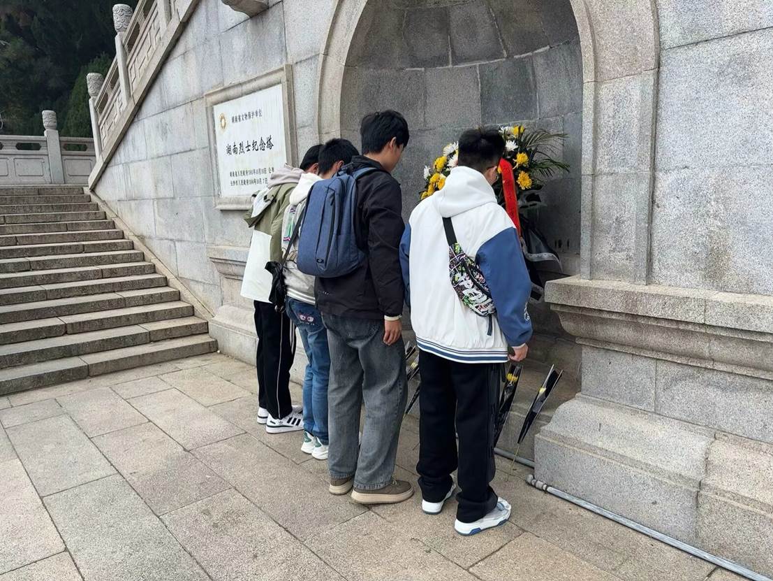 到达烈士公园后,站在烈士纪念碑前,全体同学肃立默哀,表达对革命先烈的深切缅怀与崇高敬意。默哀结束后,同学们依次上前献花,并绕纪念碑一周瞻仰碑文,感受历史的厚重与烈士英魂的无声感召。