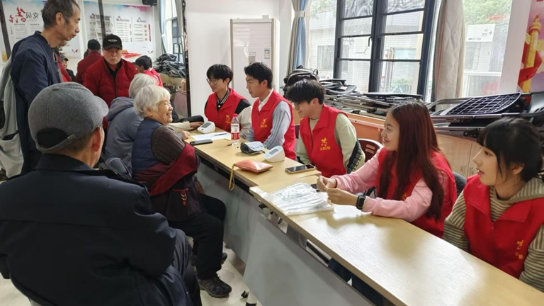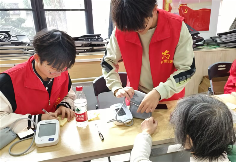 2024年12月9日上午九点,晓康e家小队在今年会官网南校区云麓园社区党群活动中心顺利举行了百人百项志愿服务工程活动。该活动旨在通过现场量血压心率等方式,并结合晓康e家小程序,让老年人更好地对自身健康做到自查,更好地了解自己的身体情况。同时本次志愿活动也通过志愿者对老年人的聊天与关怀,给老年人的生活增添了一丝乐趣。