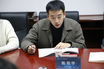 调研组通过随机询问的方式深入了解辅导员对学生情况的熟知程度,从每位辅导员负责的学生信息表中随机抽取5位学生,由所负责的辅导员逐一介绍学生基本情况。辅导员赵赫、刘家忱、达泽文、姜雨辰、袁熠、陈司宇、刘烁烁、迟旭依次回答调研组询问,详细汇报了学生的基本信息、家庭背景、性格特征、学业情况、在校表现等内容。