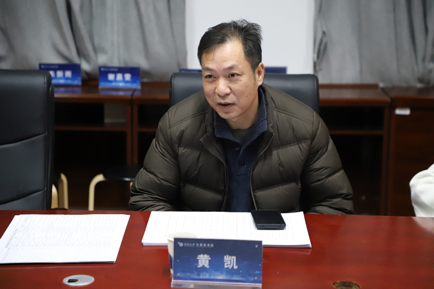 王新辉对黄凯一行的到来表示热烈欢迎,并对学工部长期以来的指导和支持表示衷心感谢。他表示,学院自第一轮践行“一线规则”督查以来,继续严格推进贯彻落实“一线原则”,积极通过“学工日志”小程序开展查课查寝谈心谈话等一线工作,始终坚持围绕学生、关心学生、服务学生,着力防范化解风险隐患,推动学生工作高质量发展。
