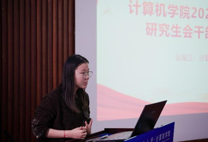 大会第一项,辅导员周清菡发言,她指出研究生工作开展要讲究方式方法,提出未来要打造一个学习型、服务型、阳光型、协同型的研究生会,既要将研会工作和团学工作结合,也要关注师生诉求、开展丰富多彩的研究生活动,共同打造“找得到,信得过,离不开”的研究生会。