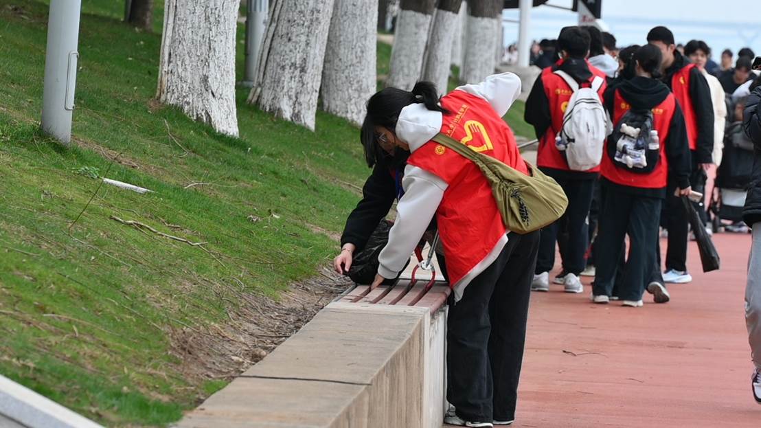 清洁过程中,志愿者们不忘向过往游客宣传文明游览知识,倡导大家摒弃乱扔垃圾的陋习,携手维护景区环境。不少游客被志愿者们的举动打动,纷纷驻足表示支持,并自发投身清洁行动。游客与志愿者并肩协作,大家手持垃圾袋,俯身仔细清理江边的每一处垃圾,用双手传递着对湘江的守护之情,共同为湘江的美丽贡献力量。