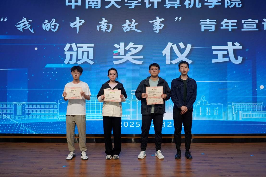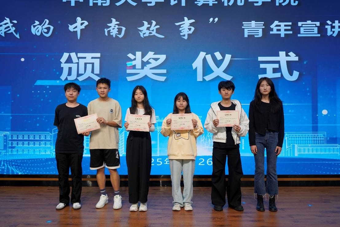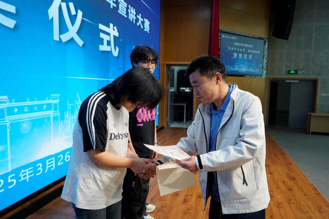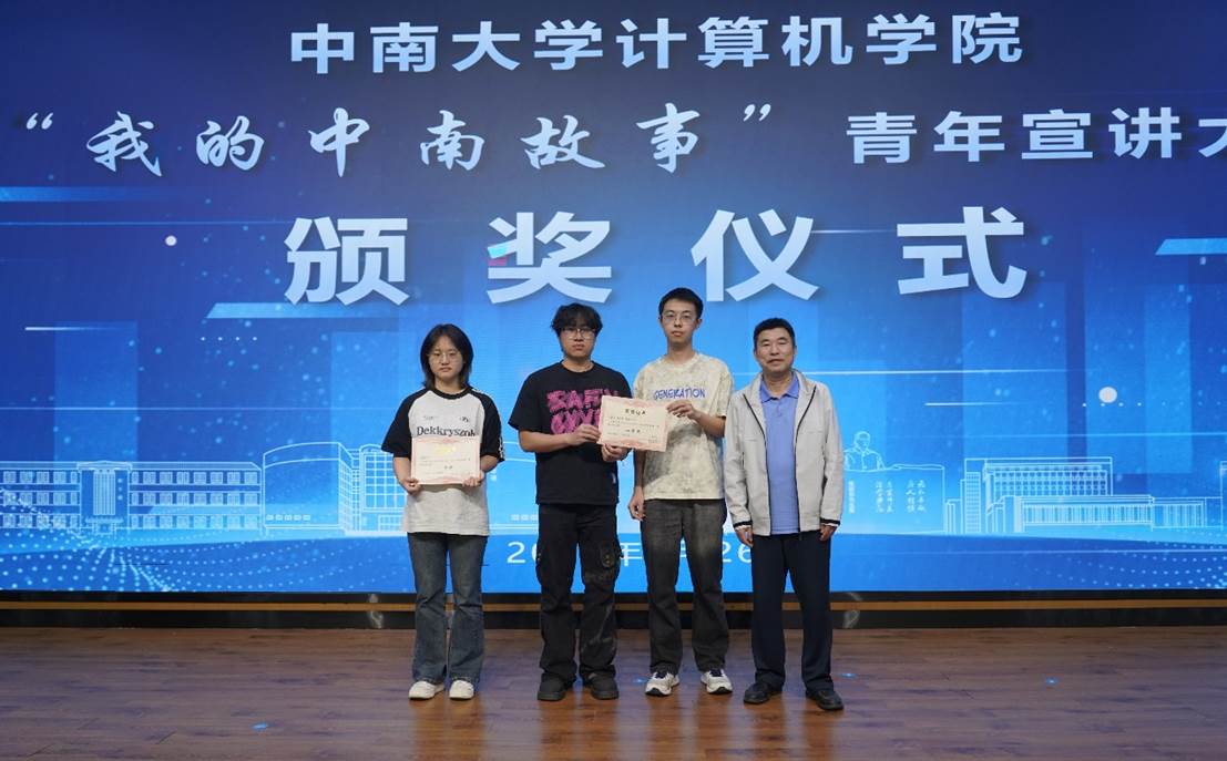 本次宣讲大赛以“我的中南故事”为主题,吸引了学院众多学子的积极参与。经过激烈角逐,共评选出两个一等奖团队、三个二等奖团队与四个三等奖团队。院党委副书记王新辉、院团委书记陈司宇、院宣传专干赵赫分别为获奖团队颁发荣誉证书。