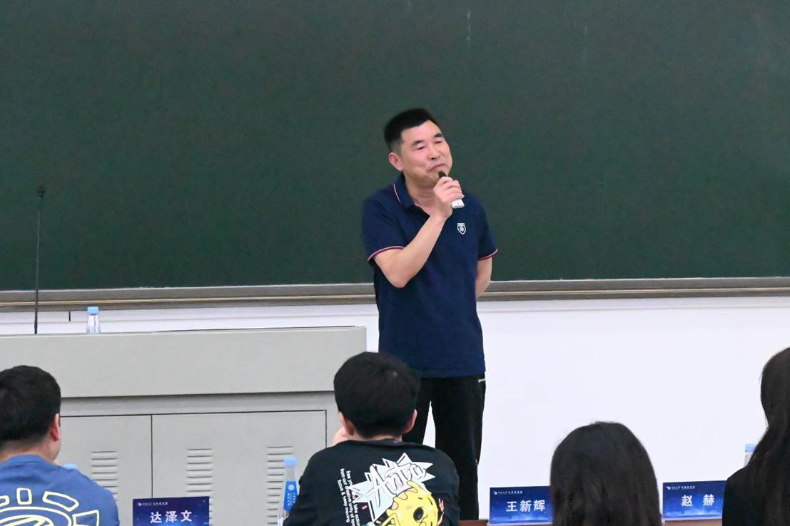 王新辉进行总结发言。他着重强调了职业发展规划对大学生成长的关键意义,指出低年级学生应提早系统规划大学生活,将职业目标前置。他希望同学们能以优秀学长学姐为榜样,主动汲取其在学业深造、社会实践、职业探索等方面的宝贵经验,站在巨人的肩膀上登高行远。他激励在场学子要以“时时奋进、事事争先”的精神,在学术钻研、技能提升中追求卓越,勇创一流,以扎实规划与不懈奋斗,在新时代的广阔舞台上实现人生价值。