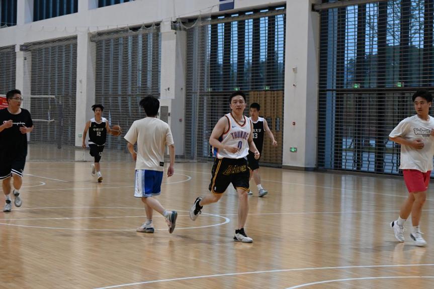 学院团委书记陈司宇、团委副书记袁熠亲临赛场,或挥汗上阵,或加油助威。比赛中,毕业生们默契配合、攻防有度,敏捷的身手与精准的投篮点燃全场。两队的精彩对决,既展现了竞技体育的魅力,更诠释了同窗的深厚情谊。