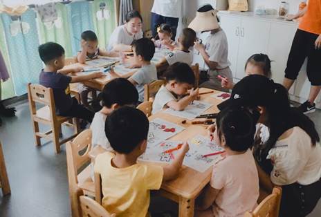 8月22日,实践团队前往位于酿溪镇的红黄蓝亲子园与小朋友们展开了亲切互动,进行红色文化的启蒙教育。