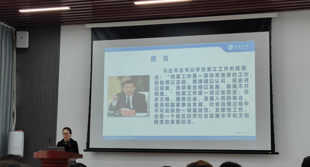 周馆长从档案的发展历程引入,带学生走进档案,用轻松的话语营造了一个愉悦的氛围,细致地讲解了档案的准确定义、相关法律法规以及档案的重要性。接着,周馆长讲述毕业生档案,主要讲解了学生档案的概述、现状、作用及管理情况。随后,周馆长提到了档案的利用与服务,通过具体的实例,教会学生如何利用档案为自己服务以及具体如何查阅档案,同学们受益匪浅。讲座最后,周馆长以习近平总书记在带领新一届中央政治局常委瞻仰中共一大会址和嘉兴南湖红船时的话“我们是为了不忘初心、坚持真理而来,我们的初心、真理就蕴含在这些档案之中”,引导学生骨干也要不忘初心,牢记使命,努力为同学们服务,坚决把好档案这一关。