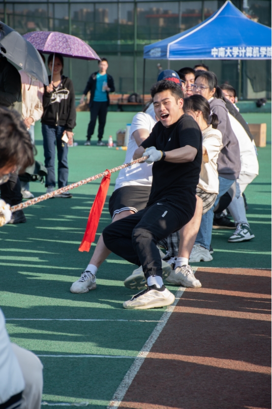 拔河比赛在众人期待下最后展开角逐,全场气氛高昂、热情洋溢,同学们都在为参赛队伍加油打气,选手们交流安排好对抗的技巧要点,纷纷摩拳擦掌、严阵以待。这场比赛比拼的不仅仅是力气,更是拔河技巧与队伍内的配合。一声声“加油”“一二三,拉”中,一步步坚守或后退中,一个个用尽全力的臂膀中,一张张努力拼搏的脸庞中蕴含的是不服输的青春气息,不懈努力的奋斗热血,凝聚的团结力量。拔河比赛在三轮紧张激烈的对决中,比出第一名为物联网2001、2002班的合并队伍,第二名为计科2004班,第三名为计科2005。