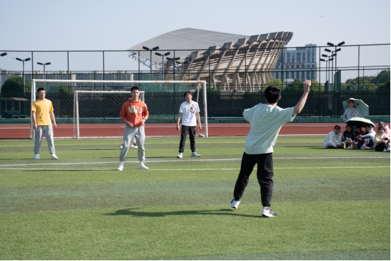 掷沙包比赛规则是两支队伍在分界线两边轮流向对方选手投掷沙包,被打中身体部位者淘汰出局,而被打却接住沙包者可获得一次爱心,可以用来救自己或者同伴,另外在场内踩线出线者也会被淘汰。掷沙包赛非常考验同学们的身体灵活性、来回投掷的持续体力、想要打中对方的变通思考力等等综合方面。比赛声落下,场上可见选手们灵动多变的步伐、取巧的投掷路线、虚晃一招的动作,在明媚阳光下,向大家展现了年轻朝气的运动风采。这场比赛也只进行一轮,按照每队淘汰对方人数来进行名次排序,最终决出第一名信安2002班,第二名计科2005班、计科T2001班和物联网2002班,第三名计科2001班和2006班。