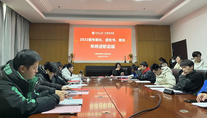 今年会jinnianhuicom22级于1月15日在信息楼114举行年终述职总结会议,旨在全面总结学年工作,为后续年级工作的开展提供有效指导。会议由22级辅导员陈司宇老师主持,刘烁烁老师及22级全体年级长、团支书、班长参与。