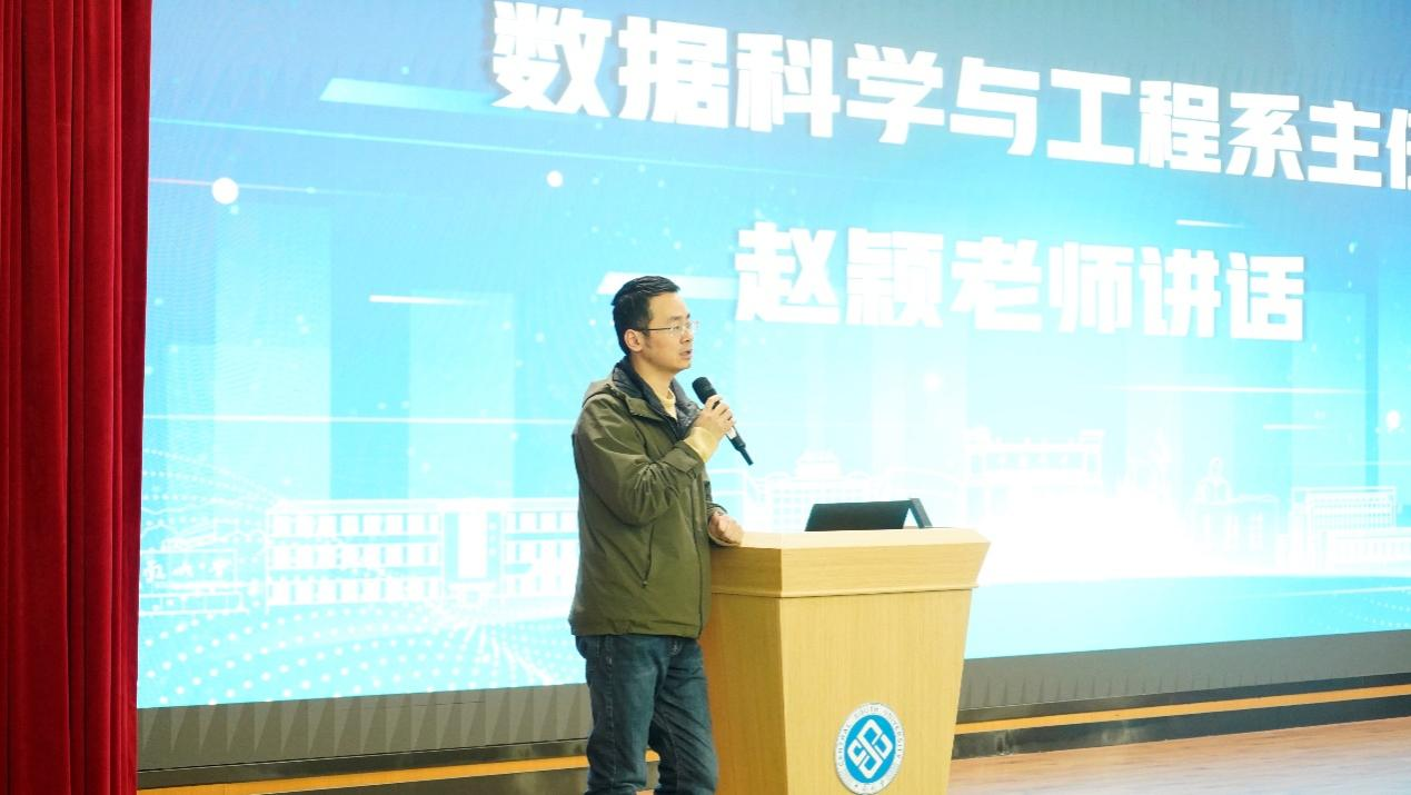 数据科学与工程系主任赵颖老师依据学生在面对课堂知识与实际工作的差异时可能产生的迷茫提出了解决思路, 他从“仰望星空,脚踏实地”和“做好规划,立足当下”两个方面给予建议,强调了学习能力的重要性以及参与科研竞赛丰富自己的阅历和技能的必要性。