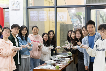 只此“清”绿共此时,制青团,承文化。青团代表着青年的活力,寄托着家乡的眷恋,蕴含着时代的哀思。研究生会的志愿者们准备了充足多样的青团制作材料,并邀请了一位经验丰富的厨师进行现场青团制作示范,详细展示了和面、馅料选择、包裹青团等关键步骤。很快同学们便掌握了制作青团的技巧,志愿者们协助他们分好小组,青团制作便正式开始了。在制作青团的过程中,同学们积极合作,分工明确,互相学习交流,场面温馨而热闹。通过亲手揉捏、包裹、蒸制,大家不仅体验了传统手工艺制作的乐趣,更感受到了传统文化的魅力。